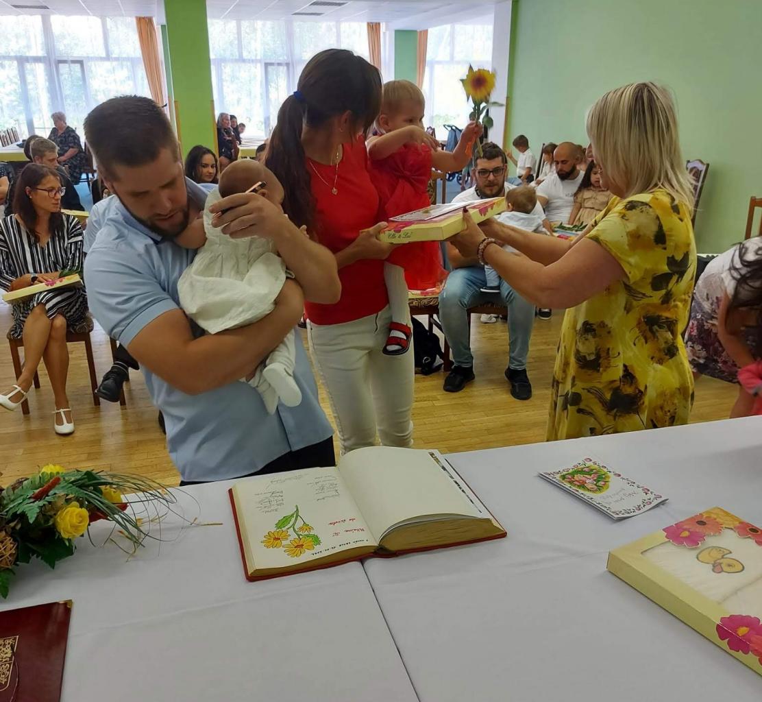 Všechna miminka obdržela dárkovou kazetu s osuškou a ručníkem, pamětní knížku, kytičku a samozřejmě rozetu s upomínkou na slavný den. Fotografie z průběhu obřadu budou k nahlédnutí v naší fotogalerii na webových stránkách města a pokud by si někdo přál fotografie z obřadu pro sebe získat, stačí když se dostaví s Flash diskem za panem Tomášem Pittlem k nám na úřad.
