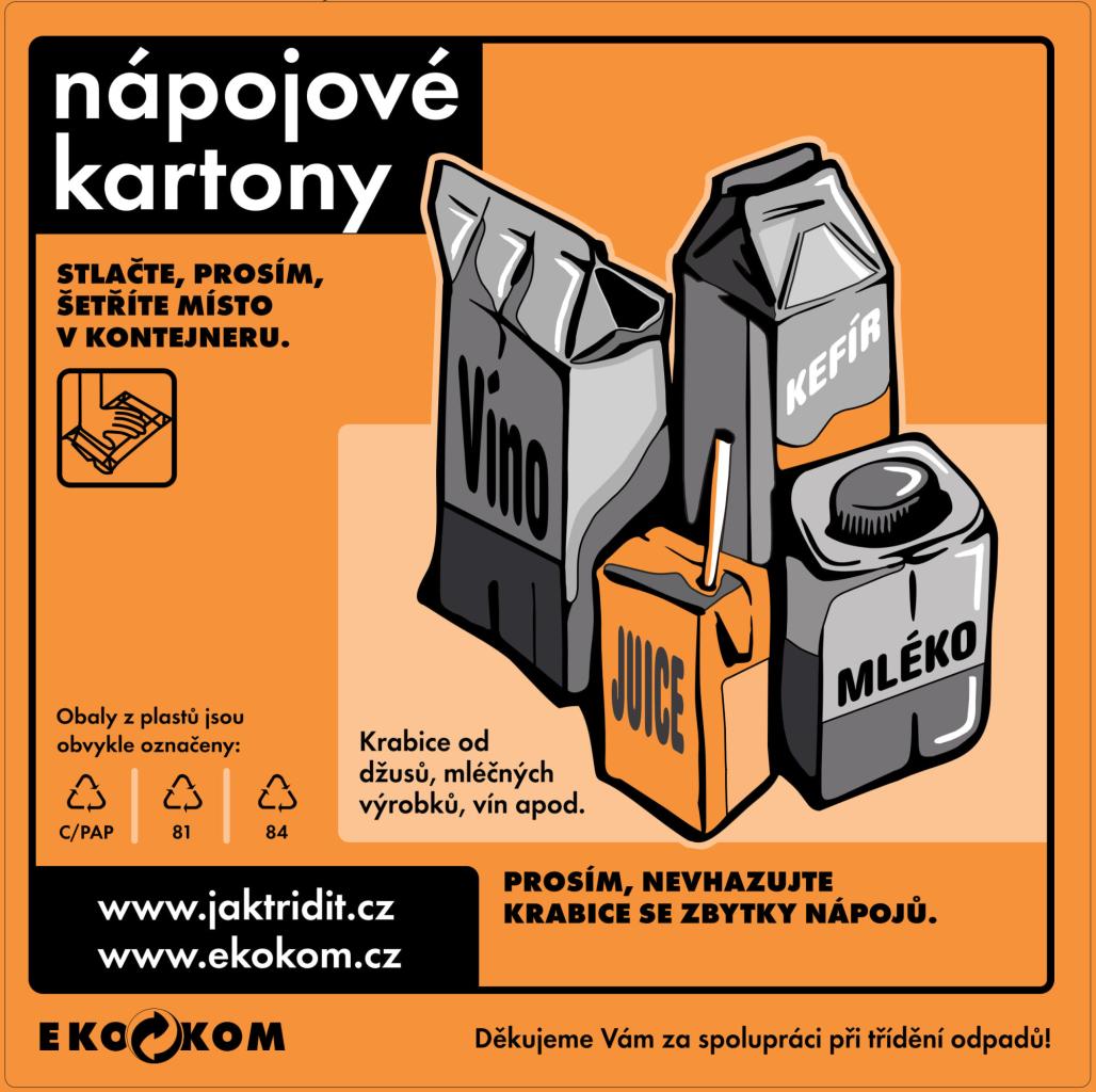 Chybí-li ve vašem okolí oranžový kontejner na nápojové kartony, můžete nově všechny prázdné kartony od nápojů odkládat do žlutého kontejneru na plast.