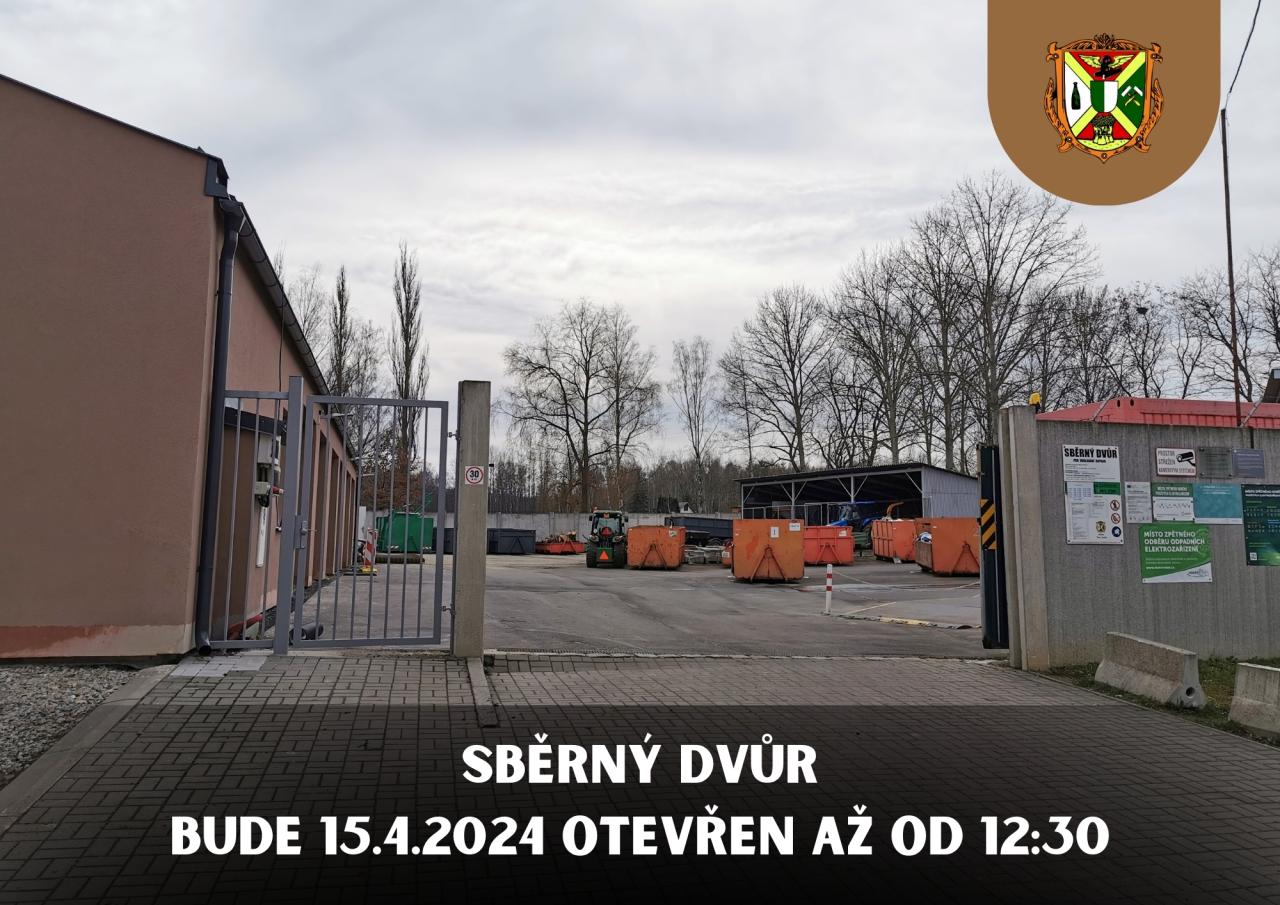 Informujeme občany, že v pondělí 15.4. bude sběrný dvůr z technických důvodů otevřen až od 12:30 hodin.