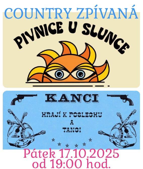 Kanci a Pivnice U Slunce vás zvou na country zpívanou, která se uskuteční 17.10.2025 od 19:00 hod. v Pivnici U Slunce v Loučkách. Plakát v příloze tohoto příspěvku.