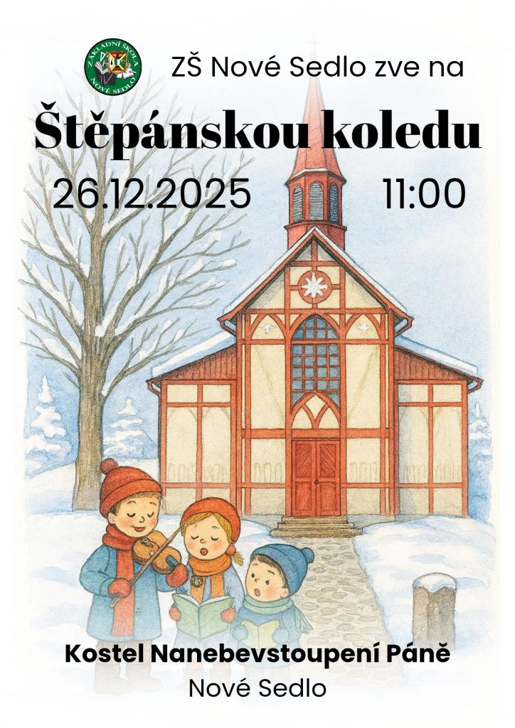 Na svátek svatého Štěpána se opět rozezní tóny koled v našem malebném kostele. Základní škola srdečně zve všechny, kdo si chtějí prodloužit kouzlo Vánoc, zazpívat si známé melodie a potkat se v přátelské atmosféře. Začínáme tradičně v 11 hodin.